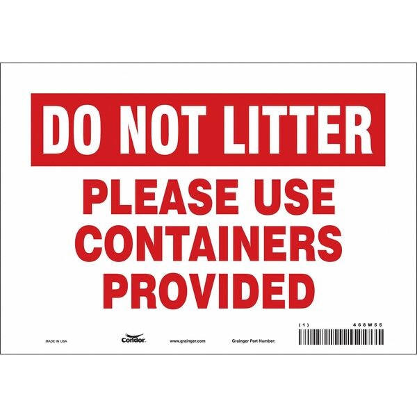Safety Sign, Vertical Rectangle, Number of Printed Sides 1, English, Sign Format Other Format, Sign Legend Please Use Containers Provided, Sign Legend Background Color Red, White, Sign Legend Style Text