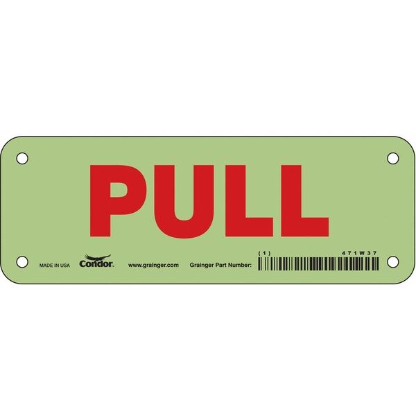 Safety Sign, Horizontal Rectangle, Number of Printed Sides 1, English, Sign Format Other Format, Sign Legend Pull, Sign Legend Background Color White, Sign Legend Style Text