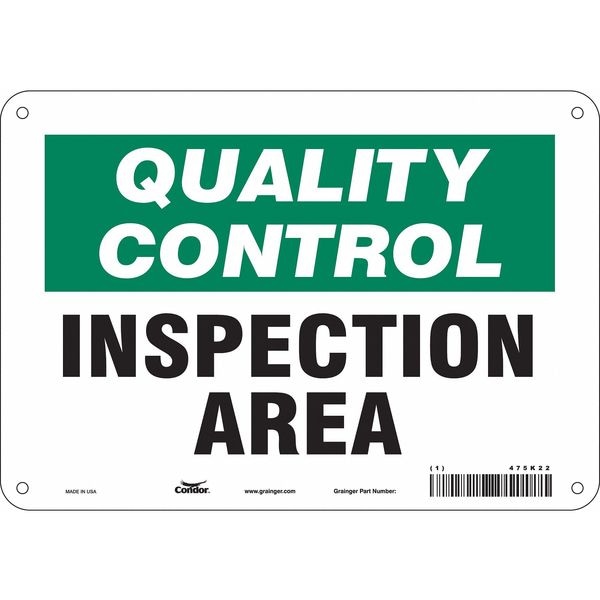 Quality Control, Inspection Area, 10 in W x 7 in H, Vertical Rectangle, Aluminum, 475K22