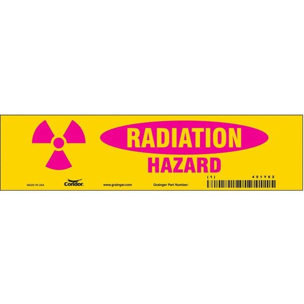 Safety Sign, Horizontal Rectangle, Number of Printed Sides 1, English, Sign Format Other Format, Sign Legend Radiation Hazard, Sign Legend Background Color Pink, Yellow, Sign Legend Style Symbol and Text