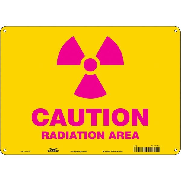 Radiation Safety Sign, 10 in H, 14 in W, Polyethylene, Horizontal Rectangle, 451Y85
