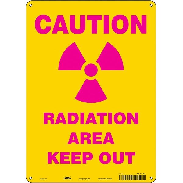 Radiation Safety Sign, 14 in H, 10 in W, Polyethylene, Vertical Rectangle, 451Z12
