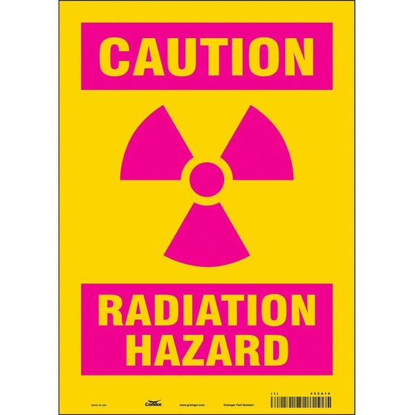 Radiation Safety Sign, 14 in H, 10 in W, Vinyl, Vertical Rectangle, 452A10