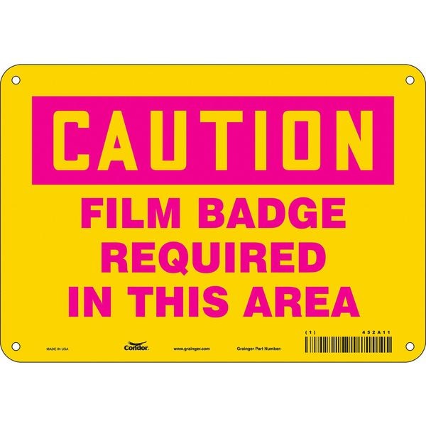 Radiation Safety Sign, Vertical Rectangle, Number of Printed Sides 1, English, Sign Format Traditional OSHA, Sign Legend Film Badge Required In This Area, Sign Legend Background Color Yellow, Sign Legend Style Text