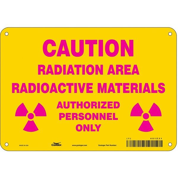 Radiation Safety Sign, 7 in H, 10 in W, Polyethylene, Vertical Rectangle, 451Z31