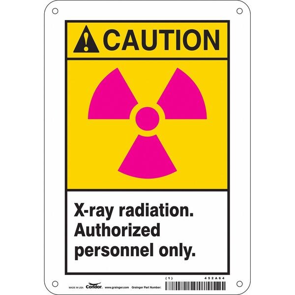Radiation Sign, 10 in H, 7 in W, Aluminum, Horizontal Rectangle, 452A64