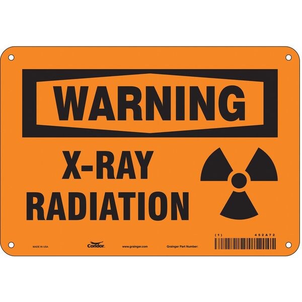 Radiation Sign, Vertical Rectangle, Number of Printed Sides 1, English, Sign Format Traditional OSHA, Sign Legend X-Ray Radiation, Sign Legend Background Color Orange, Sign Legend Style Symbol and Text