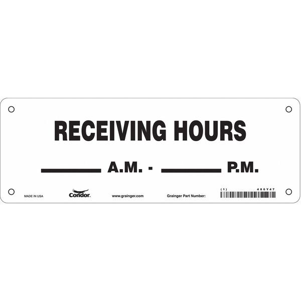 RECEIVING HOURS _ A.M.-_ P.M., 20 in W x 7 in H, Vertical Rectangle, Polyethylene, 486Y47