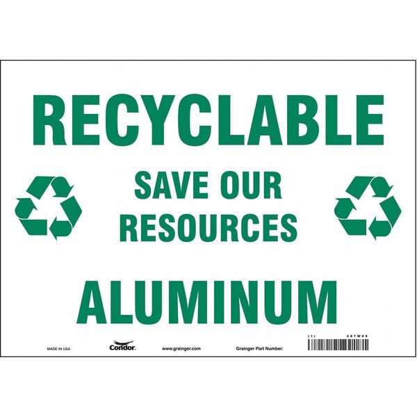 Safety Sign, Horizontal Rectangle, Number of Printed Sides 1, English, Sign Format Other Format, Sign Legend Recyclable Aluminum Save Our Resources, Sign Legend Background Color White, Sign Legend Style Symbol and Text