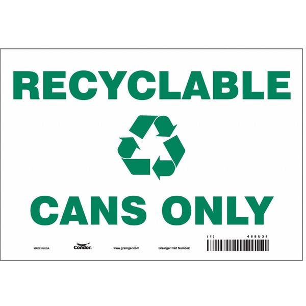 Recyclable Cans Only, 10 in W x 7 in H, Vertical Rectangle, Vinyl, 468U31