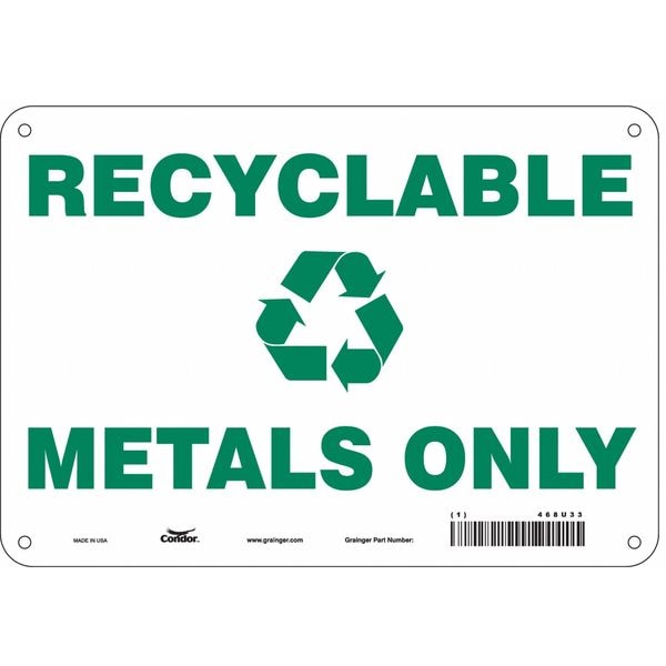 Recyclable Metals Only, 10 in W x 7 in H, Vertical Rectangle, Aluminum, 468U33