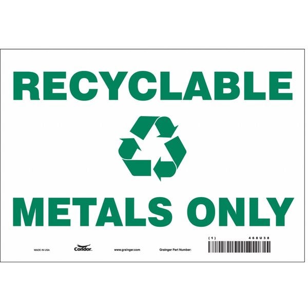 Recyclable Metals Only, 10 in W x 7 in H, Vertical Rectangle, Vinyl, 468U38