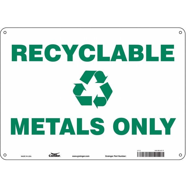 Recyclable Metals Only, 14 in W x 10 in H, Horizontal Rectangle, Polyethylene, 468U37