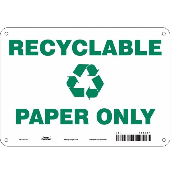 Recyclable Paper Only, 10 in W x 7 in H, Vertical Rectangle, Polyethylene, 468U51