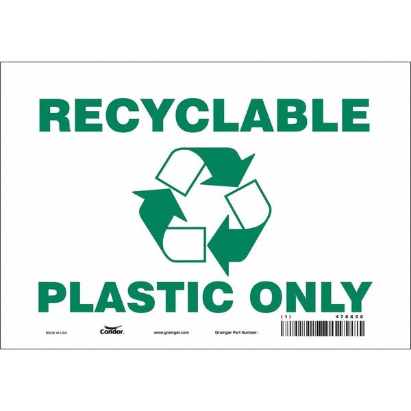 RECYCLABLE PLASTIC ONLY, 10 in W x 7 in H, Vertical Rectangle, Vinyl, 478X50