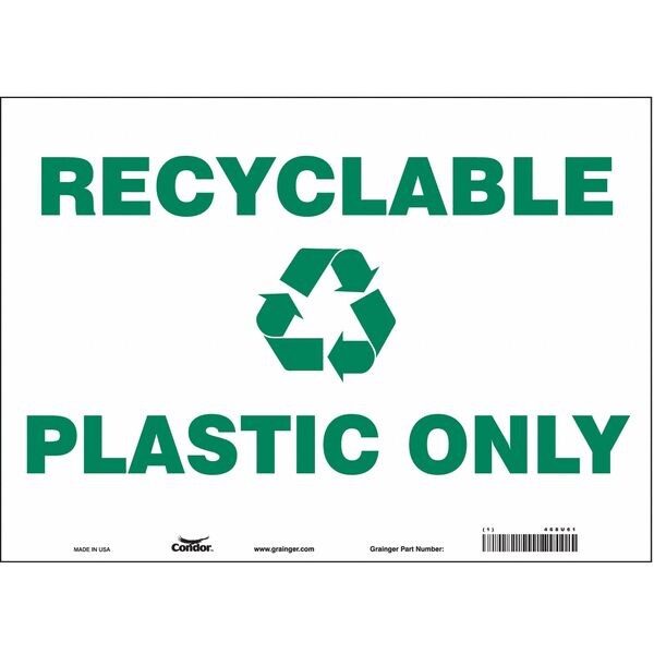 Recyclable Plastic Only, 14 in W x 10 in H, Horizontal Rectangle, Vinyl, 468U61
