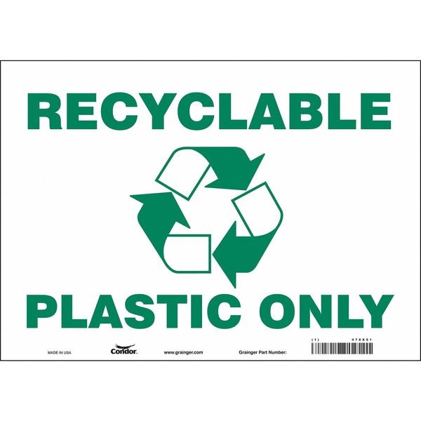 RECYCLABLE PLASTIC ONLY, 14 in W x 10 in H, Horizontal Rectangle, Vinyl, 478X51