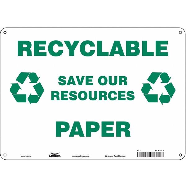 Safety Sign, Horizontal Rectangle, Number of Printed Sides 1, English, Sign Format Other Format, Sign Legend Recyclable Save Our Resources Paper, Sign Legend Background Color White, Sign Legend Style Symbol and Text