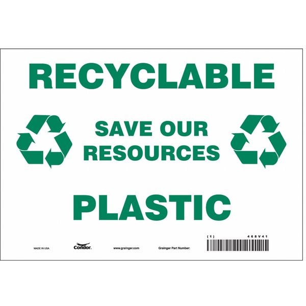 Recyclable Save Our Resources Plastic, 10 in W x 7 in H, Vertical Rectangle, Vinyl, 468V41