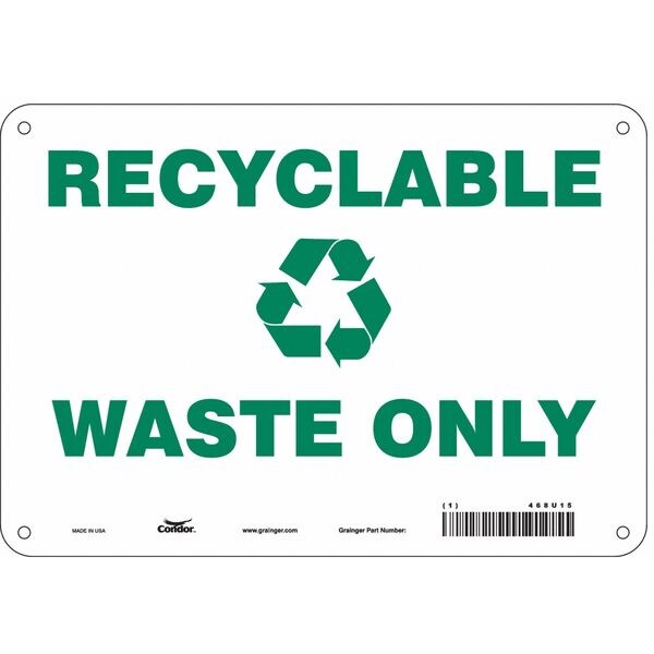 Recyclable Waste Only, 10 in W x 7 in H, Vertical Rectangle, Polyethylene, 468U15