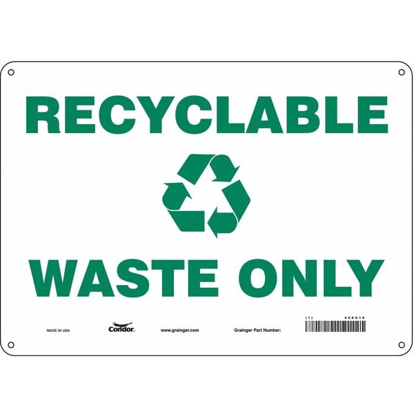 Safety Sign, Horizontal Rectangle, Number of Printed Sides 1, English, Sign Format Other Format, Sign Legend Recyclable Waste Only, Sign Legend Background Color White, Sign Legend Style Symbol and Text
