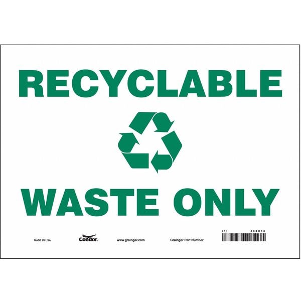 Recyclable Waste Only, 14 in W x 10 in H, Horizontal Rectangle, Vinyl, 468U18