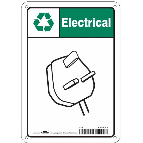 Recycle Sign, Electrical, 7 in W x 10 in H, Horizontal Rectangle, Aluminum, 468U98