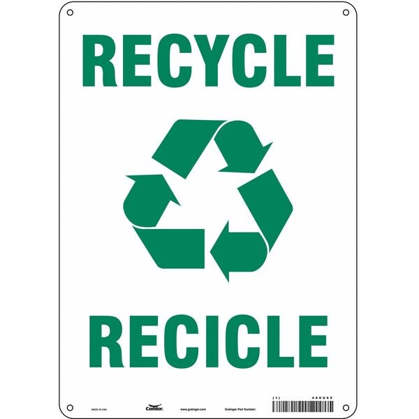 Safety Sign, Vertical Rectangle, Number of Printed Sides 1, English, Spanish, Sign Legend Recycle/Recicle, Sign Legend Background Color White, Sign Legend Style Symbol and Text