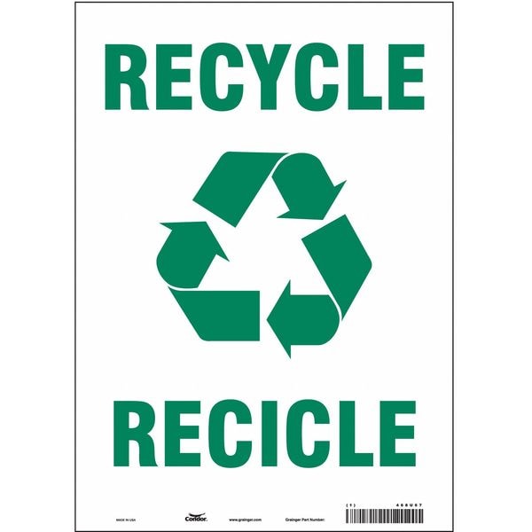 Safety Sign, Vertical Rectangle, Number of Printed Sides 1, English, Spanish, Sign Legend Recycle/Recicle, Sign Legend Background Color White, Sign Legend Style Symbol and Text