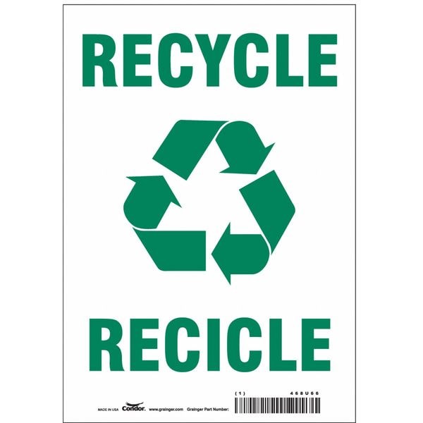 Safety Sign, Horizontal Rectangle, Number of Printed Sides 1, English, Spanish, Sign Legend Recycle/Recicle, Sign Legend Background Color White, Sign Legend Style Symbol and Text