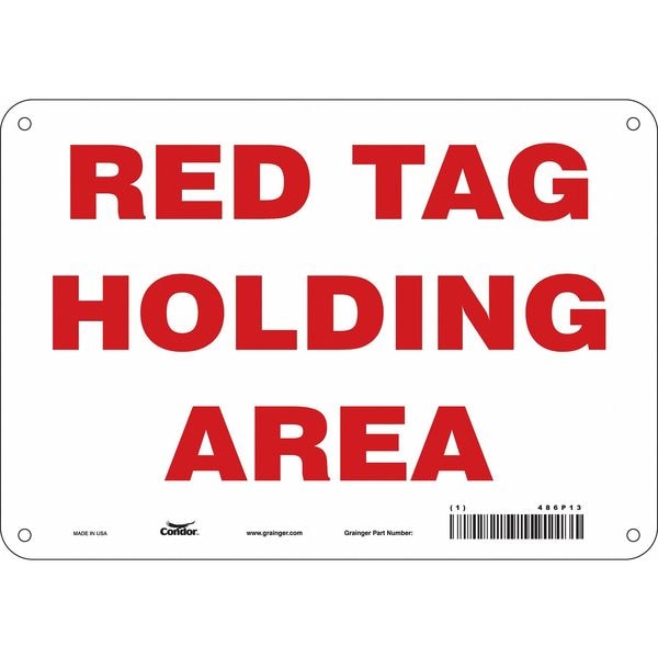 RED TAG HOLDING AREA, 10 in W x 7 in H, Vertical Rectangle, Polyethylene, 486P13