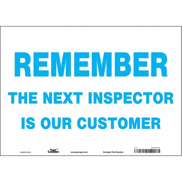Safety Sign, Horizontal Rectangle, Number of Printed Sides 1, English, Sign Format Other Format, Sign Legend Remember The Next Inspector Is Our Customer, Sign Legend Background Color White, Sign Legend Style Text