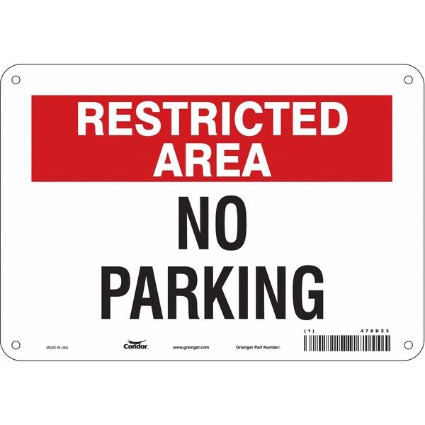 Restricted Area No Parking Sign, Height 7 in, Width 10 in, Sign Material Polyethylene, Sign Mounting Style Mounting Holes, Printed Language English, Sign Shape Horizontal Rectangle