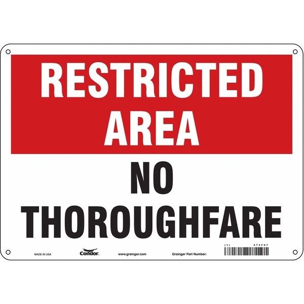 Restricted Area, No Thoroughfare, 14 in W x 10 in H, Horizontal Rectangle, Aluminum, 473F07
