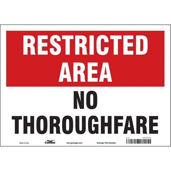 Restricted Area, No Thoroughfare, 14 in W x 10 in H, Horizontal Rectangle, Vinyl, 473F12