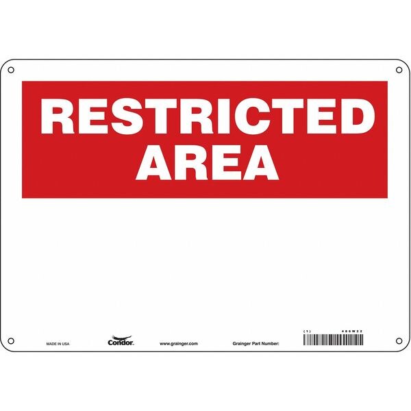Restricted Area Sign, 14" W, 10" H, English, Plastic, White
