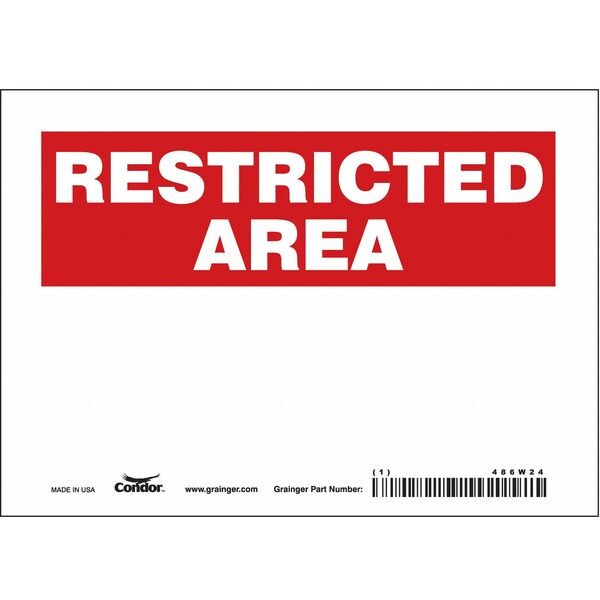 Restricted Area Sign, 7" W, 5" H, English, Vinyl, White