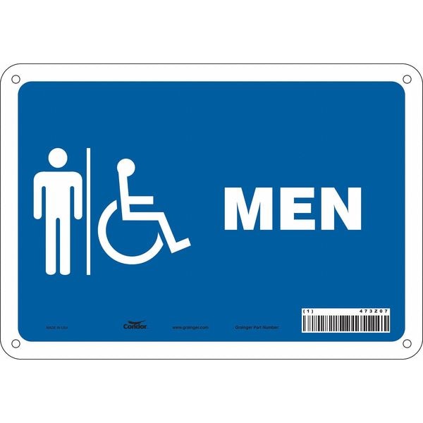 Restroom Sign, MEN, 10 in W x 7 in H, Vertical Rectangle, Polyethylene, 473Z07