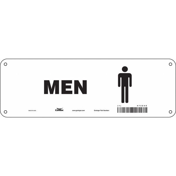 Restroom Sign, Vertical Rectangle, Number of Printed Sides 1, English, Sign Format Other Format, Sign Legend Men, Sign Legend Background Color White, Sign Legend Style Symbol and Text