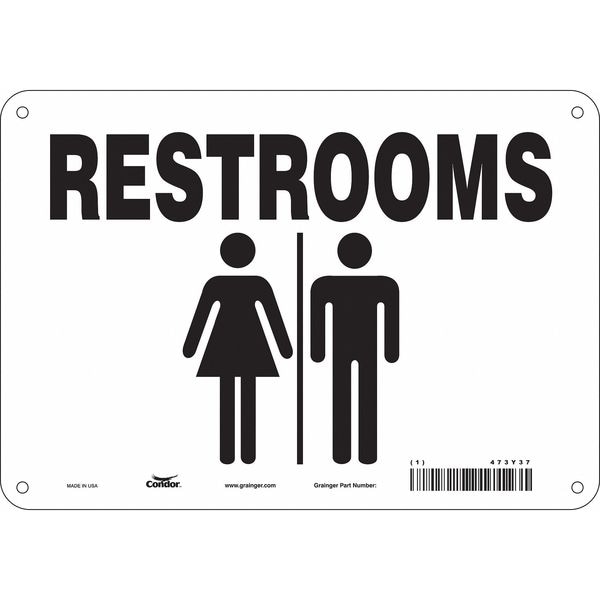 RESTROOMS, 10 in W x 7 in H, Vertical Rectangle, Polyethylene, 473Y37