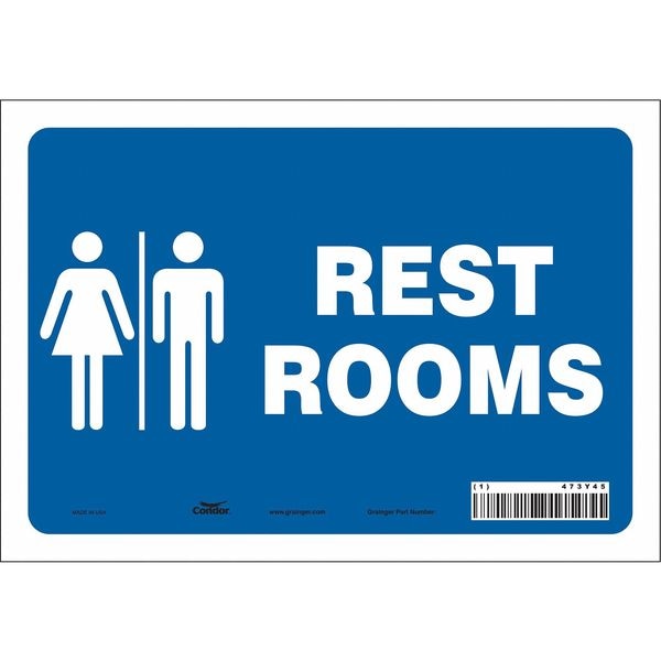 RESTROOMS, 10 in W x 7 in H, Vertical Rectangle, Vinyl, 473Y45