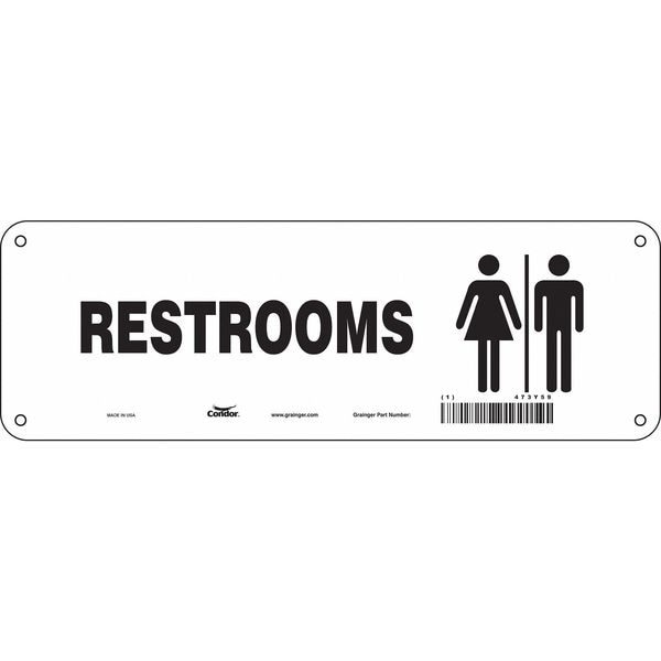RESTROOMS, 12 in W x 4 in H, Vertical Rectangle, Polyethylene, 473Y59