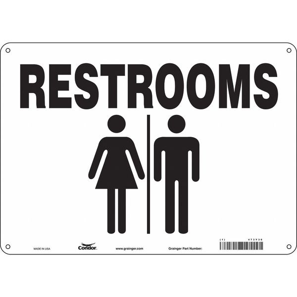 RESTROOMS, 14 in W x 10 in H, Horizontal Rectangle, Aluminum, 473Y36