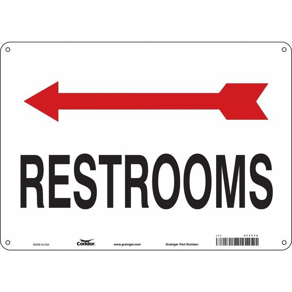 RESTROOMS, 14 in W x 10 in H, Horizontal Rectangle, Polyethylene, 473Y75