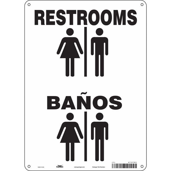 RESTROOMS/BANOS, 10 in W x 14 in H, Vertical Rectangle, Polyethylene, 473Y95