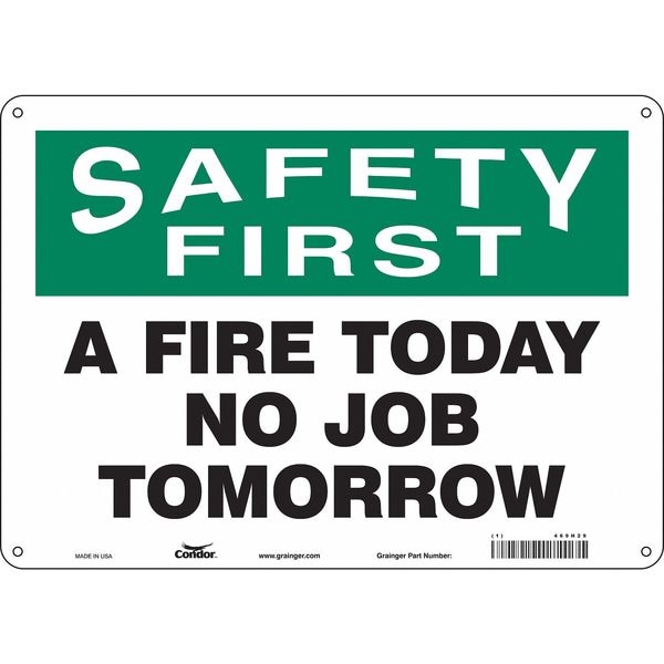 Safety First, A FIRE TODAY NO JOB TOMORROW, 14 in W x 10 in H, Horizontal Rectangle, Polyethylene