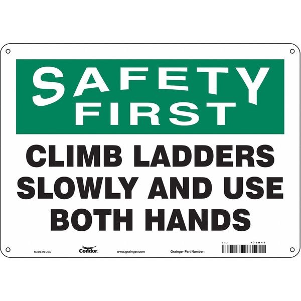 Safety First, CLIMB LADDERS SLOWLY AND USE BOTH HANDS, 14 in x 10 in, Horizontal Rectangle, 479H45