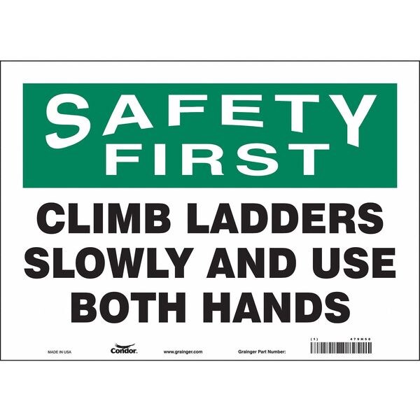 Safety First, CLIMB LADDERS SLOWLY AND USE BOTH HANDS, 14 in x 10 in, Horizontal Rectangle, 479H50