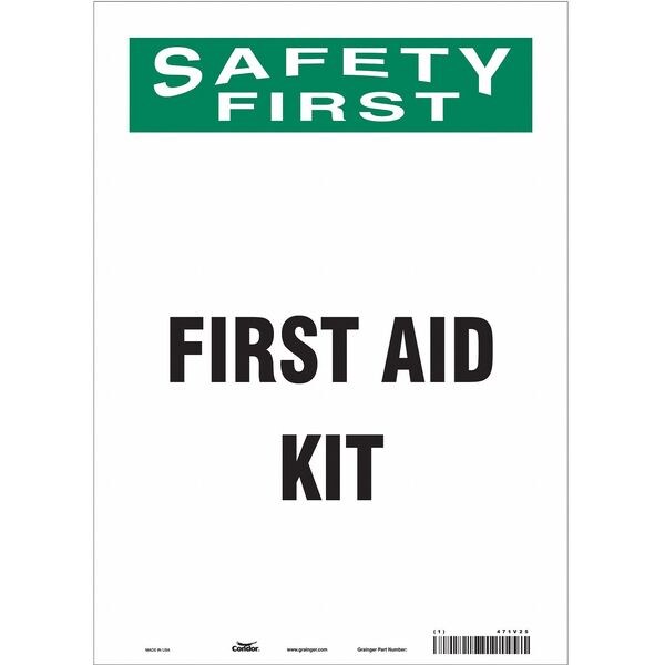 First Aid Sign, Vertical Rectangle, Number of Printed Sides 1, English, Sign Format Traditional OSHA, Sign Legend First Aid Kit, Sign Legend Background Color White, Sign Legend Style Text