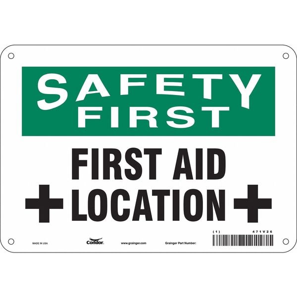Safety First, First Aid Location, 10 in W x 7 in H, Vertical Rectangle, Aluminum, 471V26